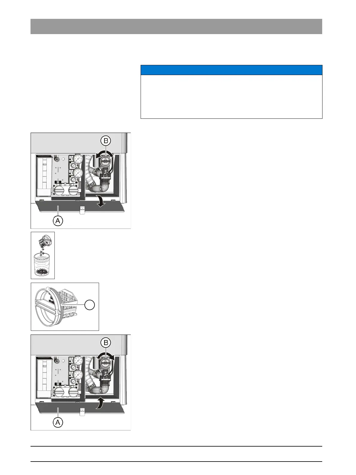2. Loosen the bayonet catch of the filter insert (B). Unscrew the filter