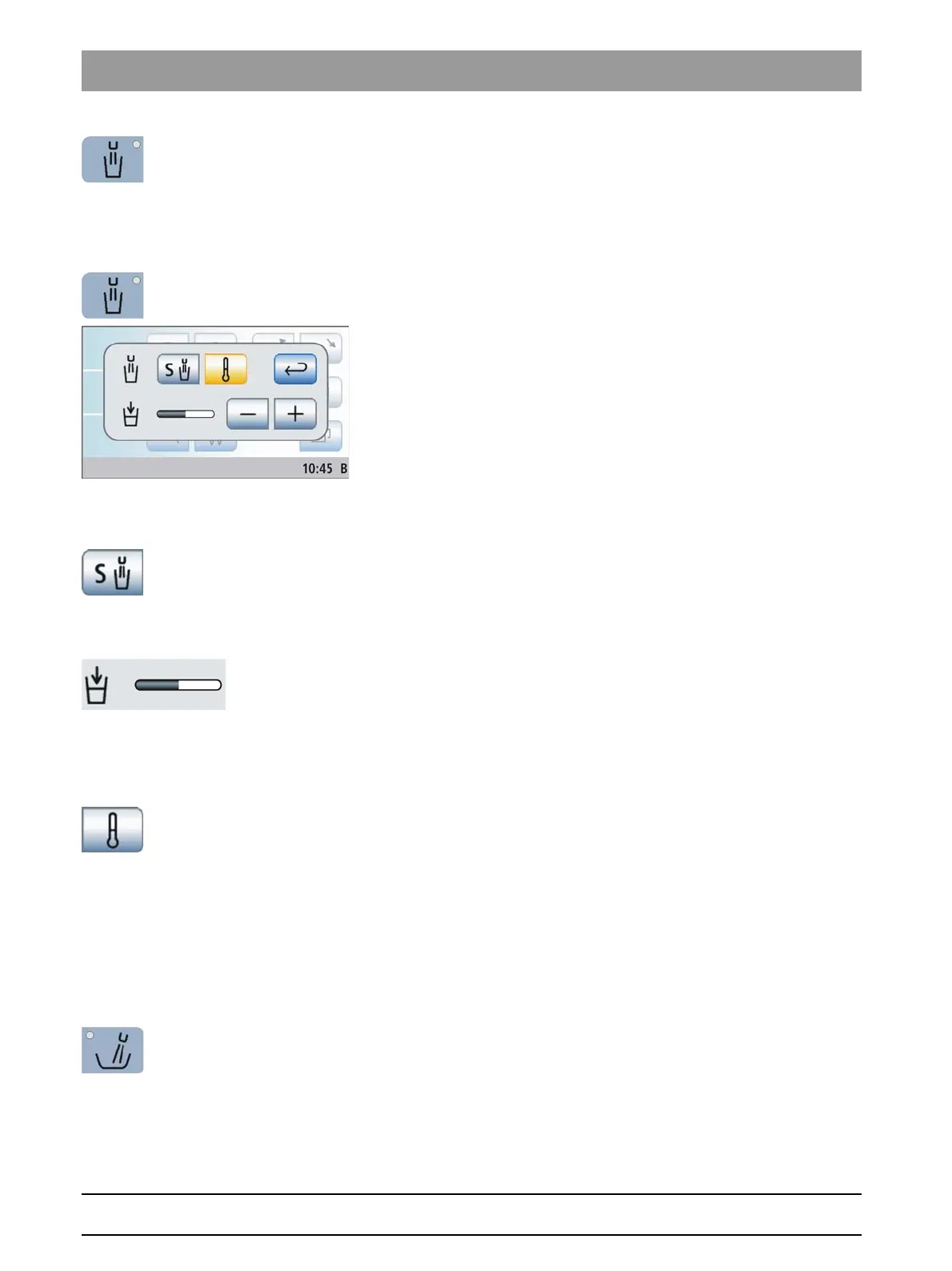 ➢ Switch the tumbler tempering function on/off. Touch the