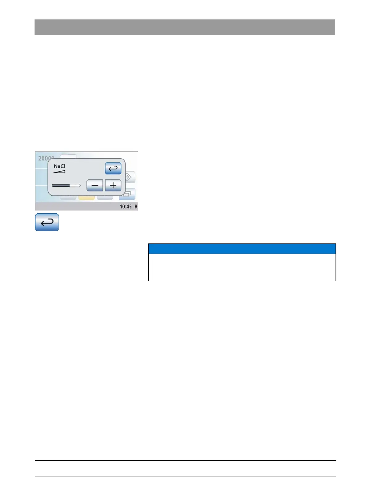 2. Use the – and + keys to set the flow rate of the NaCl pump.