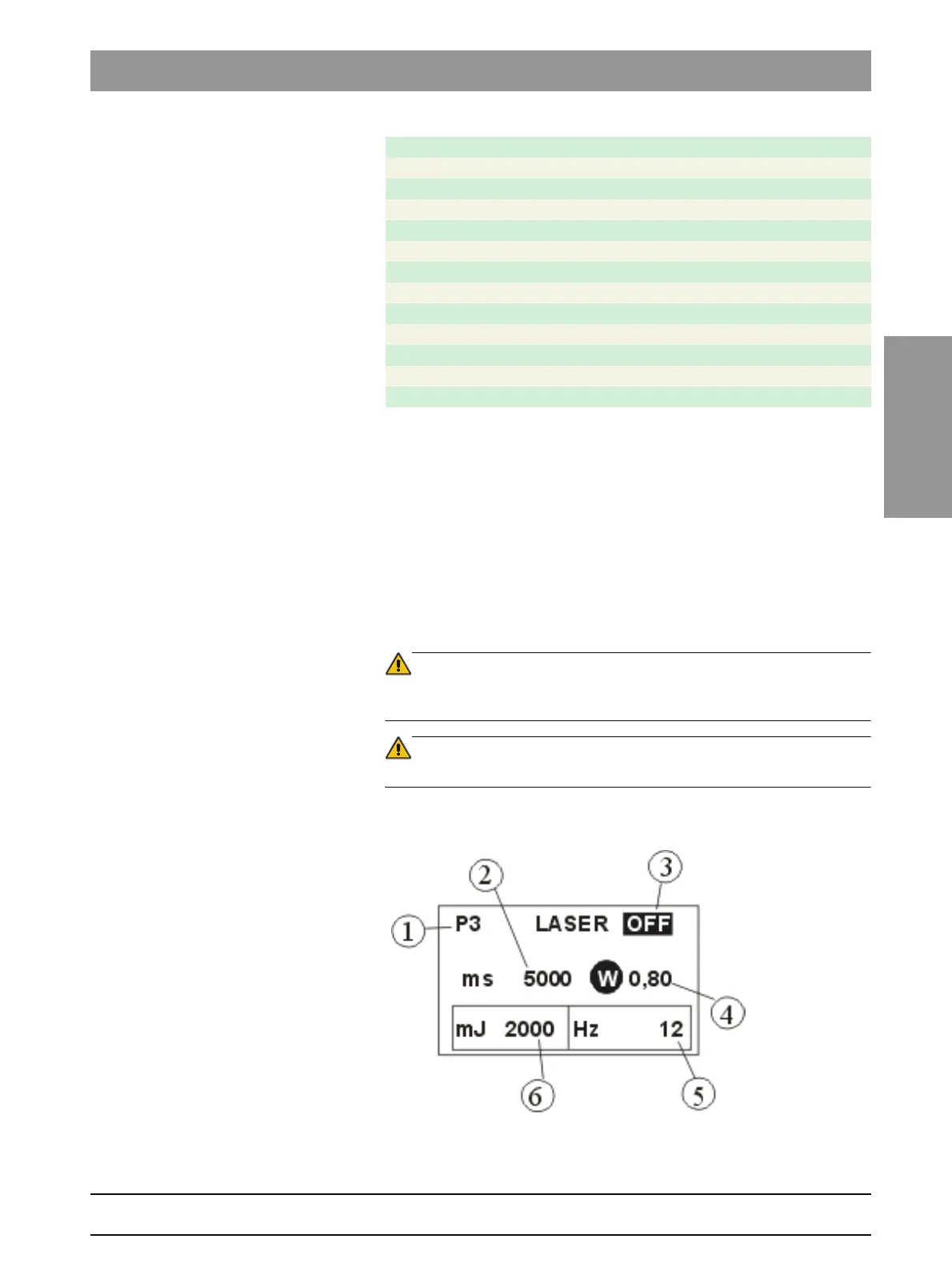 ª The green LEDs start flashing, indicating that the laser is in standby mode