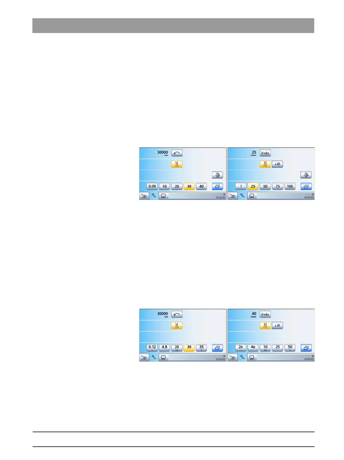 Motor program (speed) and ultrasonic program (intensity) with static quick