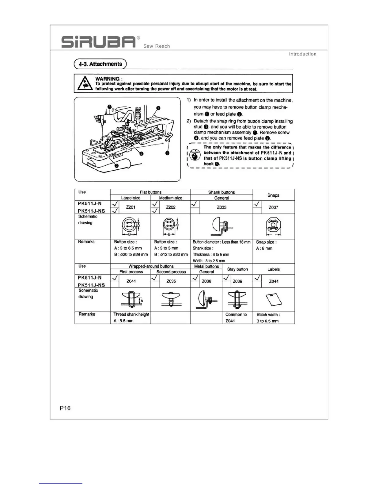 Siruba PK511 - Attachments