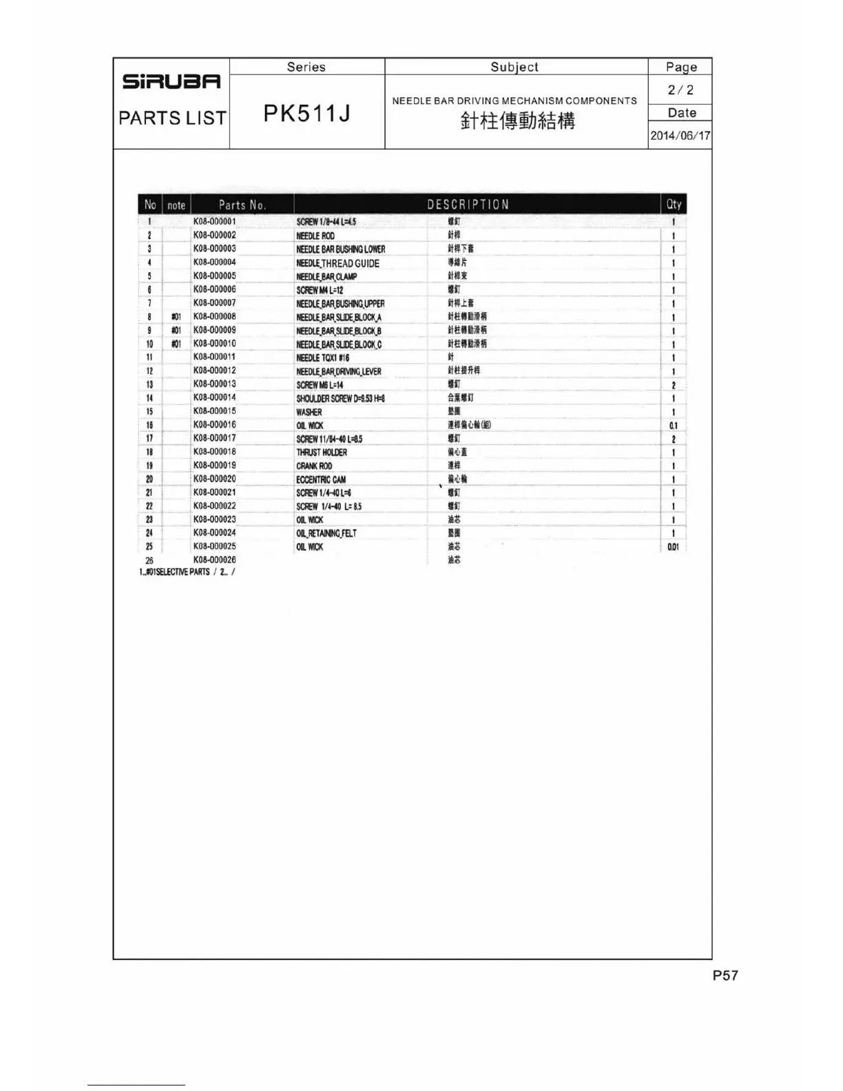 NEEDLE BAR DRIVING MECHANISM COMPONENTS