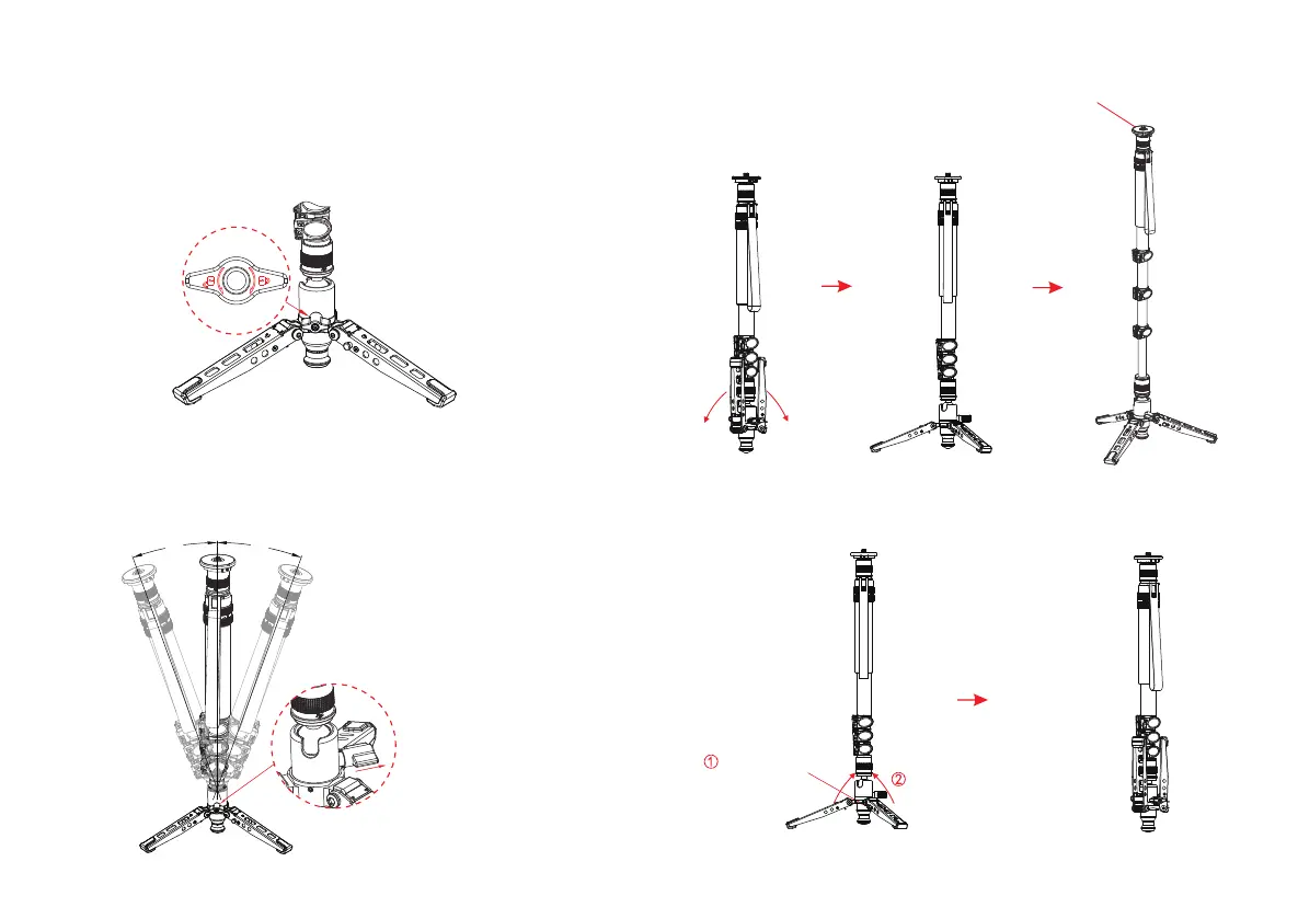 4.2 Loosen the Ball Locking Knob to tilt the monopod 36° in any
