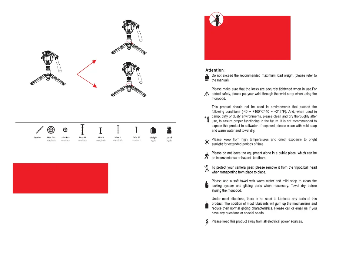 1. Please make sure the buckles are locked securely and hold the monopod with your