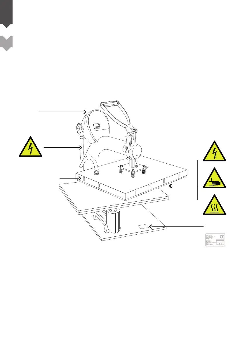 The caution and danger symbols shown above indicate the presence of residual hazards which,