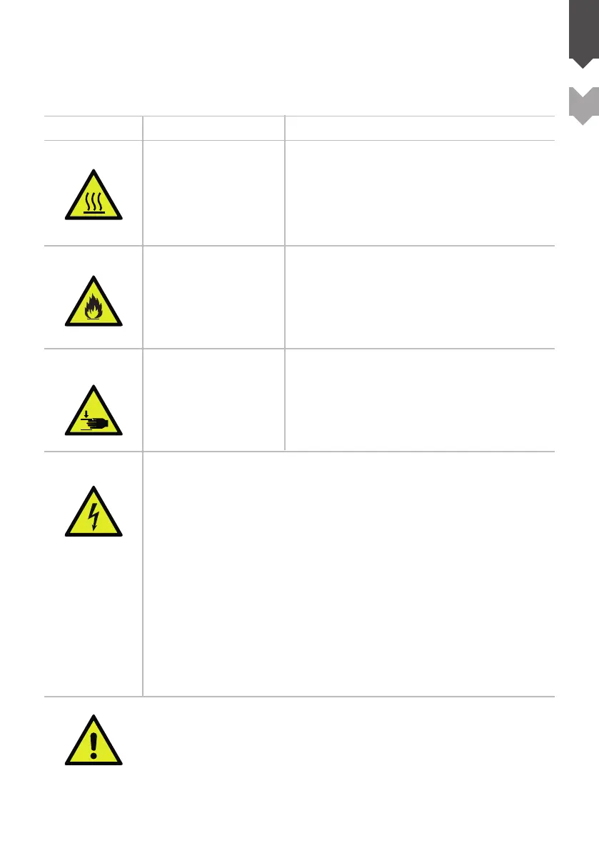The hazardous parts in use on the machine are outlined in the following table, together with the