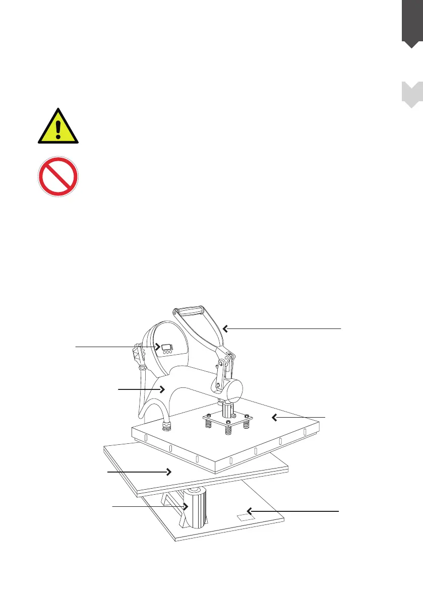 • dem beweglichen Arm, der am freien Ende die Heizplatte trägt.