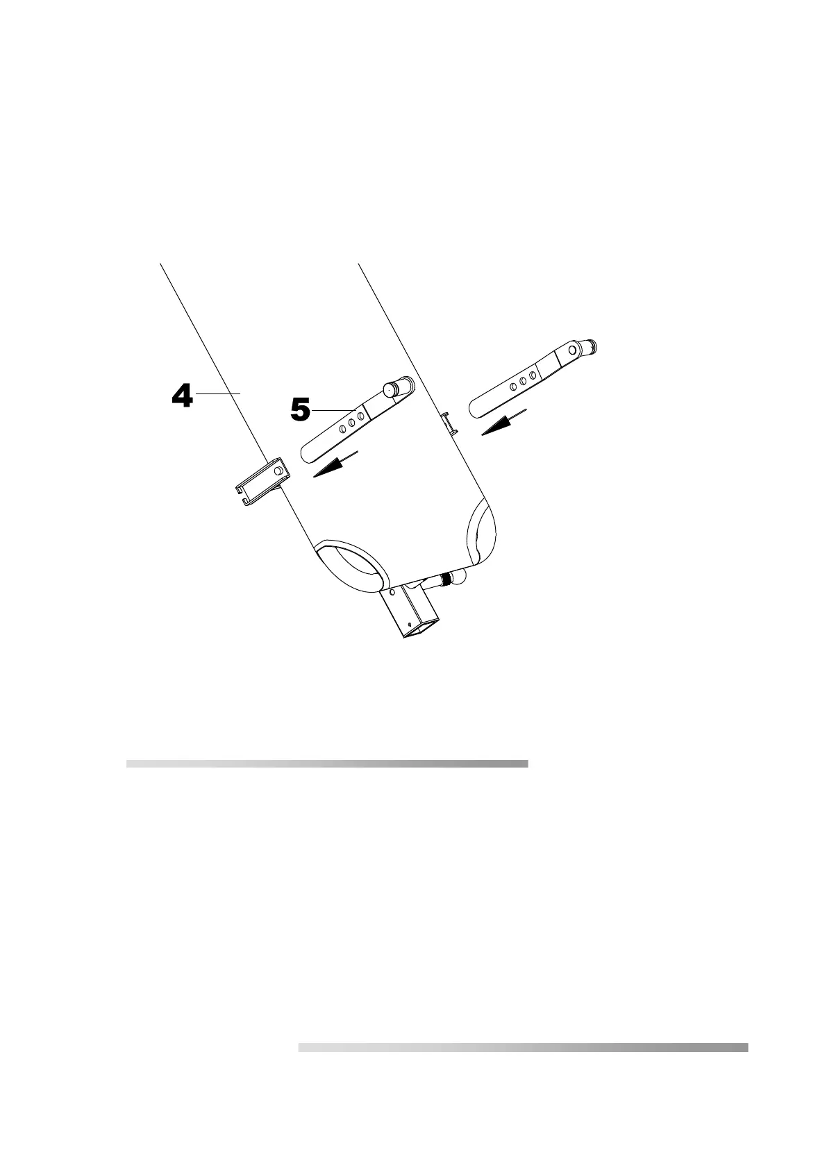 Slide the lower end of the pivot arm (5) from above into the retainers attached to each side of