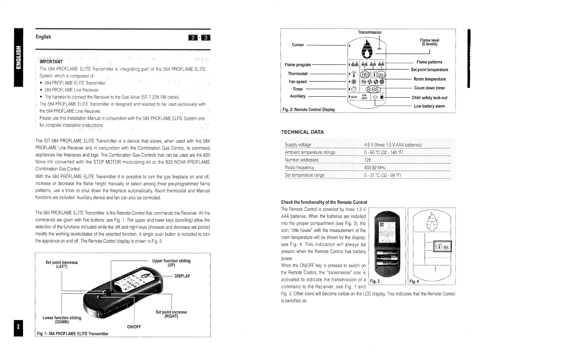 Sit 584 - Technical Specifications and Remote Control Functionality; Technical Data; Remote Control Functionality Check