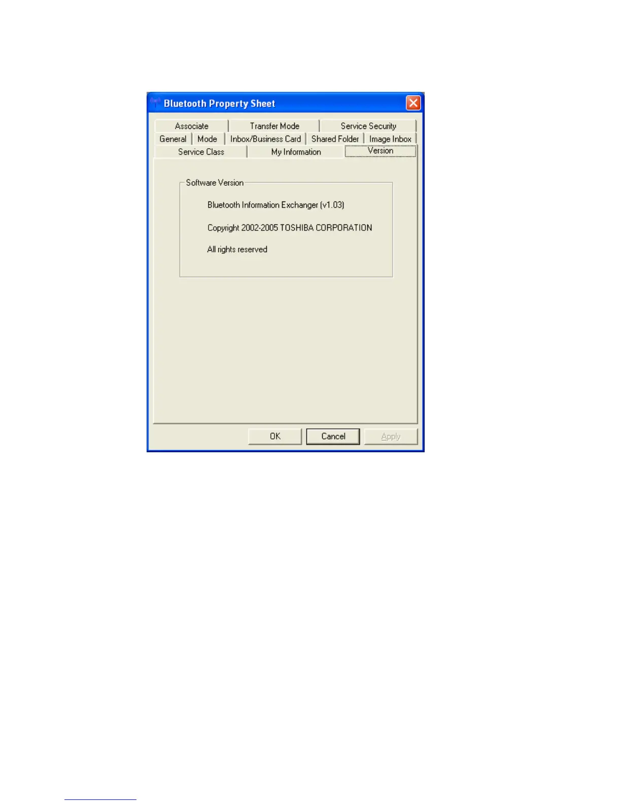 “Version” shows version information about Bluetooth Information