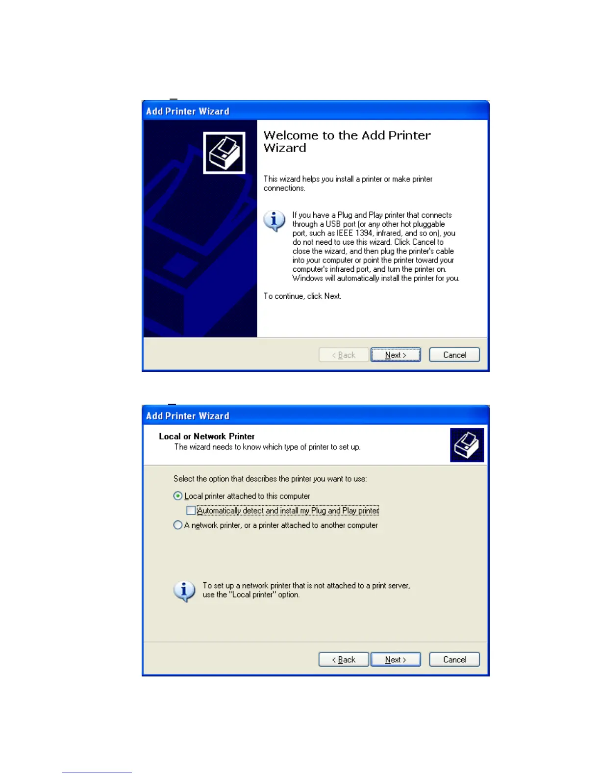 The Add Printer Wizard will automatically launch if the printer driver is not