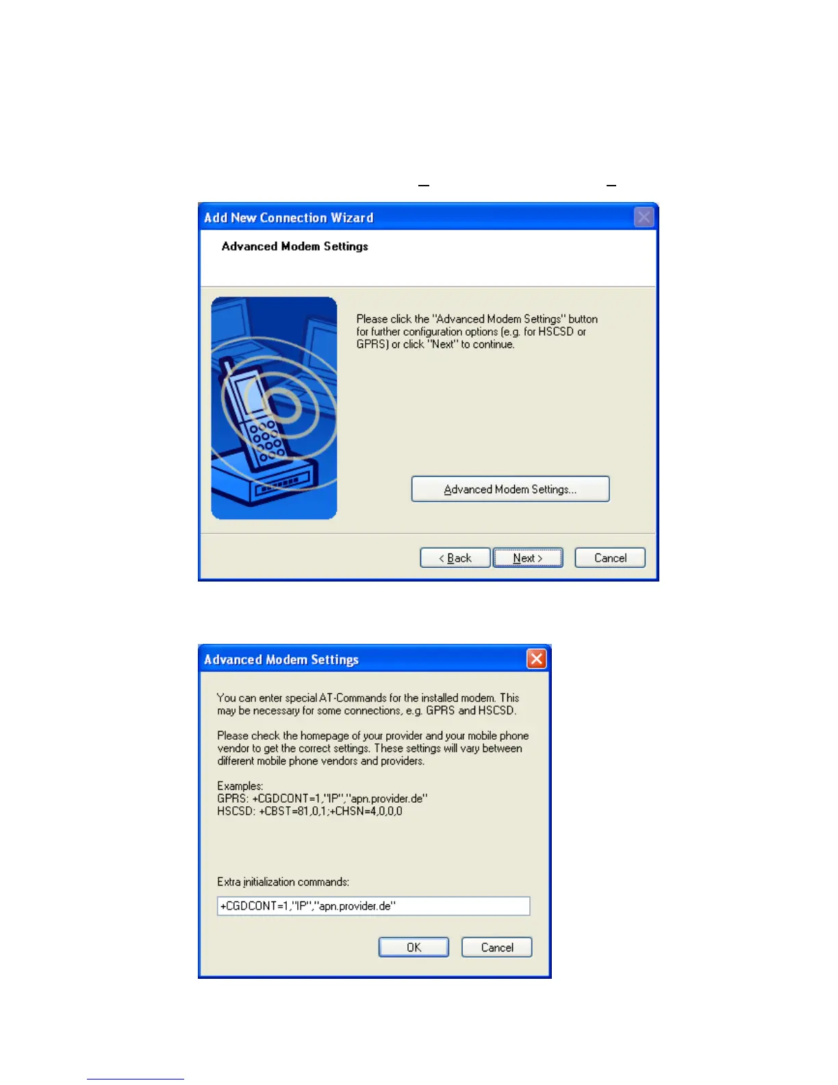Enter your special AT commands. For GPRS and HSCSD there are two
