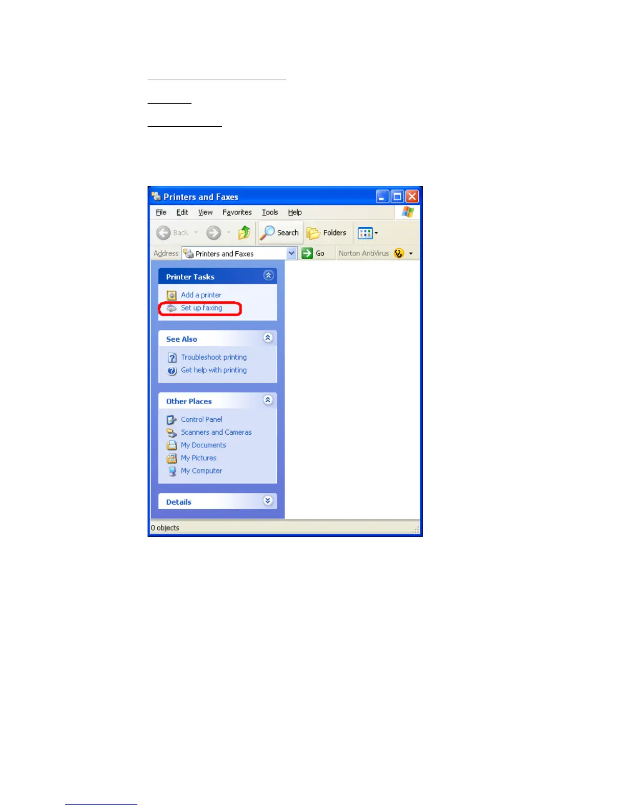 Open the Printers and Faxes view: [START]-[Printers and Faxes]