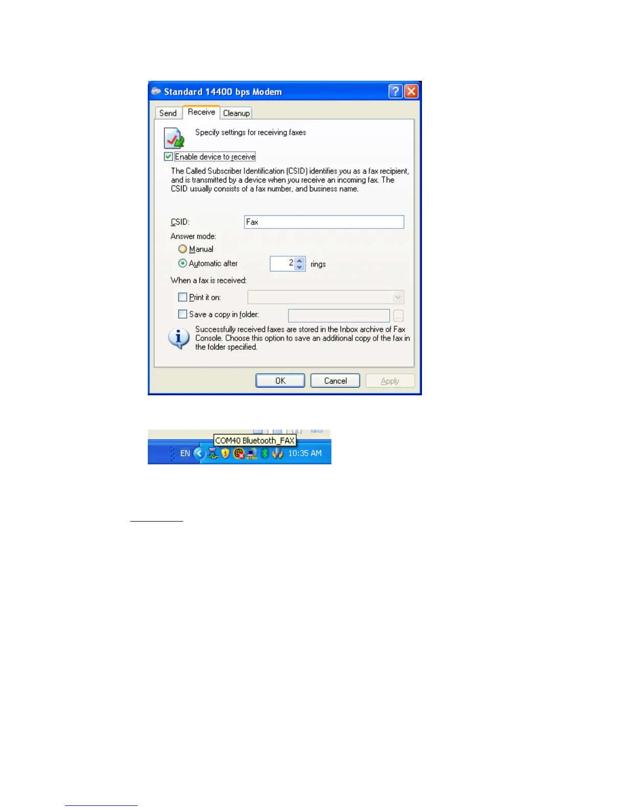 • If you have selected to automatically receive faxes, a Bluetooth™