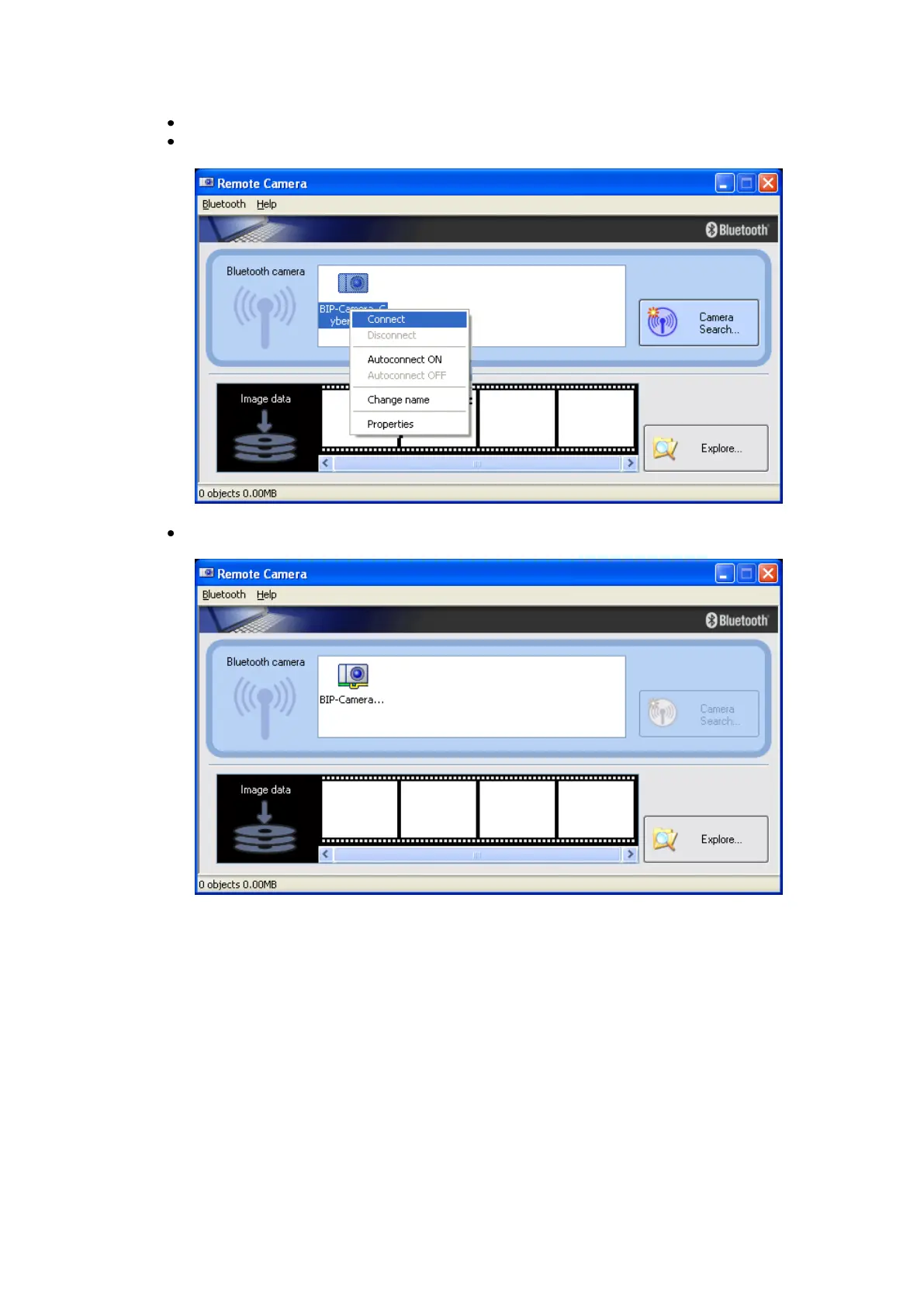 All available Bluetooth™ cameras will be listed.