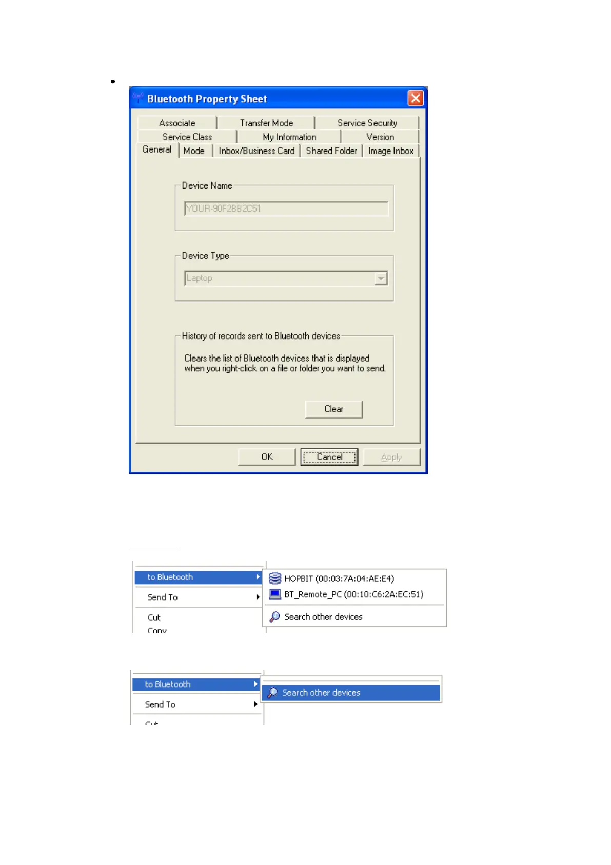 To clear the list of the most recently used Bluetooth™ devices click the
