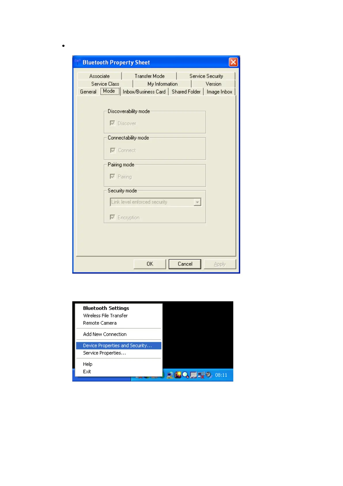 ICON in the tray bar and selecting „Device Properties and Security...‟