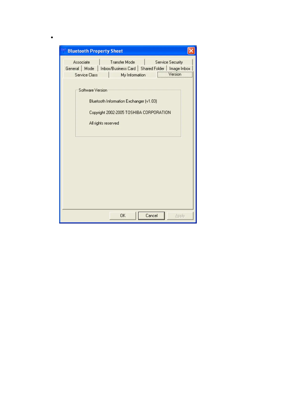 “Version” shows version information about Bluetooth Information