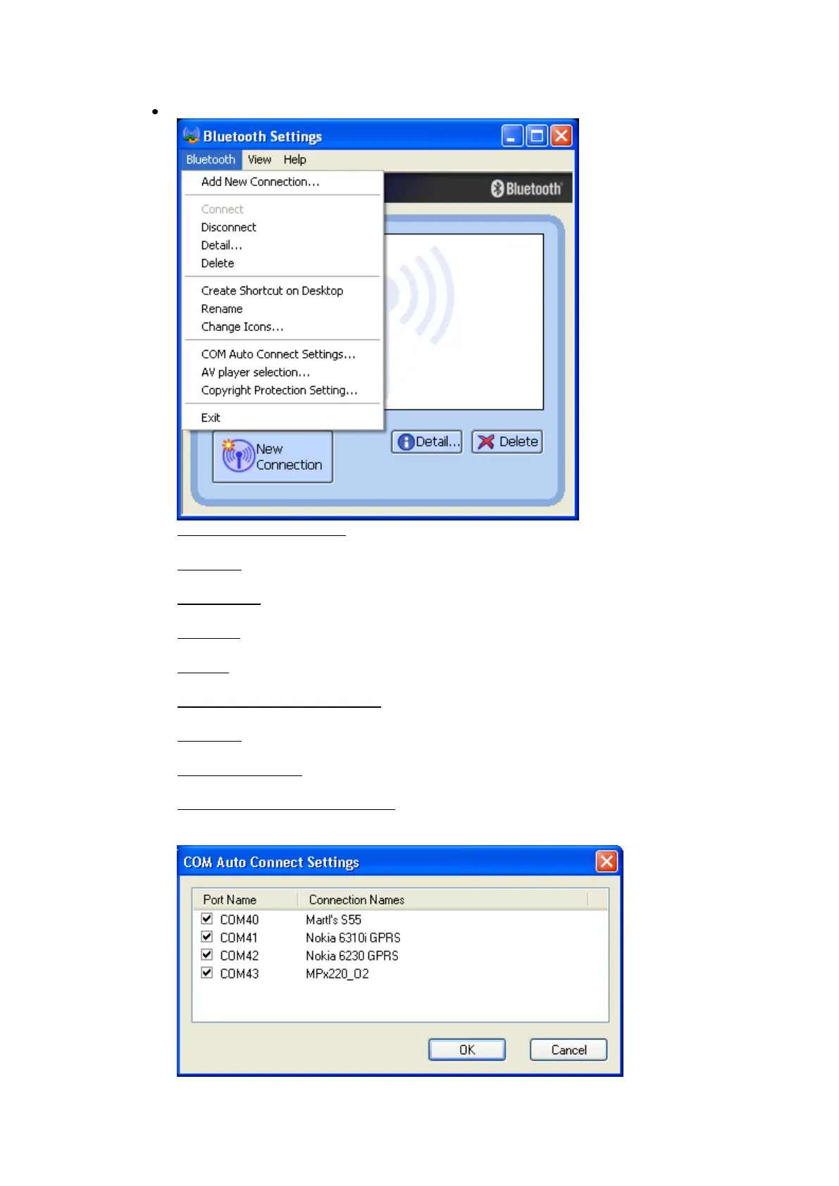 COM Auto Connect Settings...: