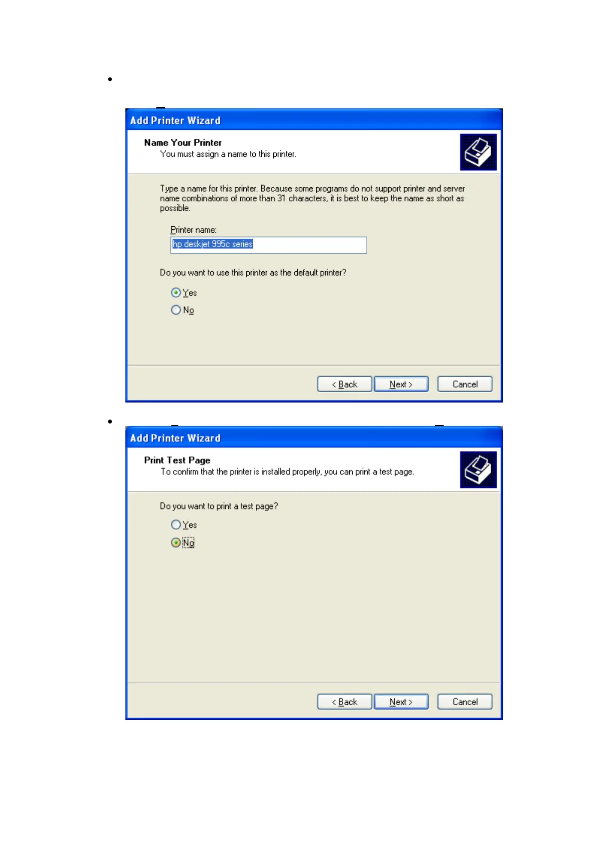 Select „No to “Do you want to print a test page?” and click Next‟.