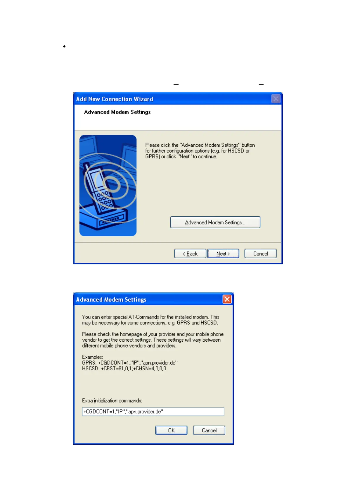 Enter your special AT commands. For GPRS and HSCSD there are two