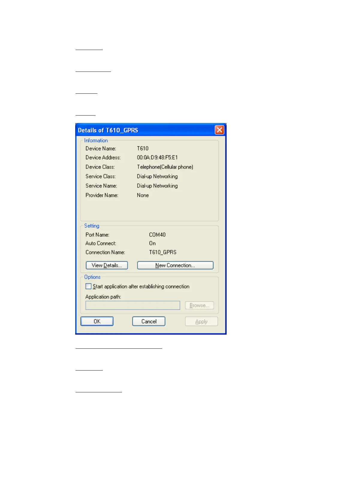 Shows detailed information of the selected connection.