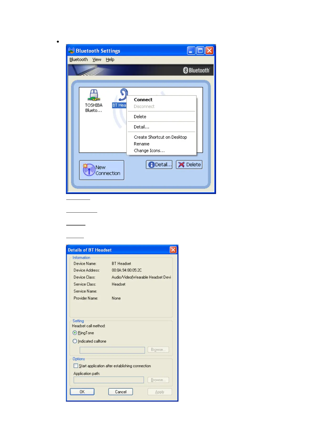 Disconnects an existing Bluetooth™ connection to the selected device.