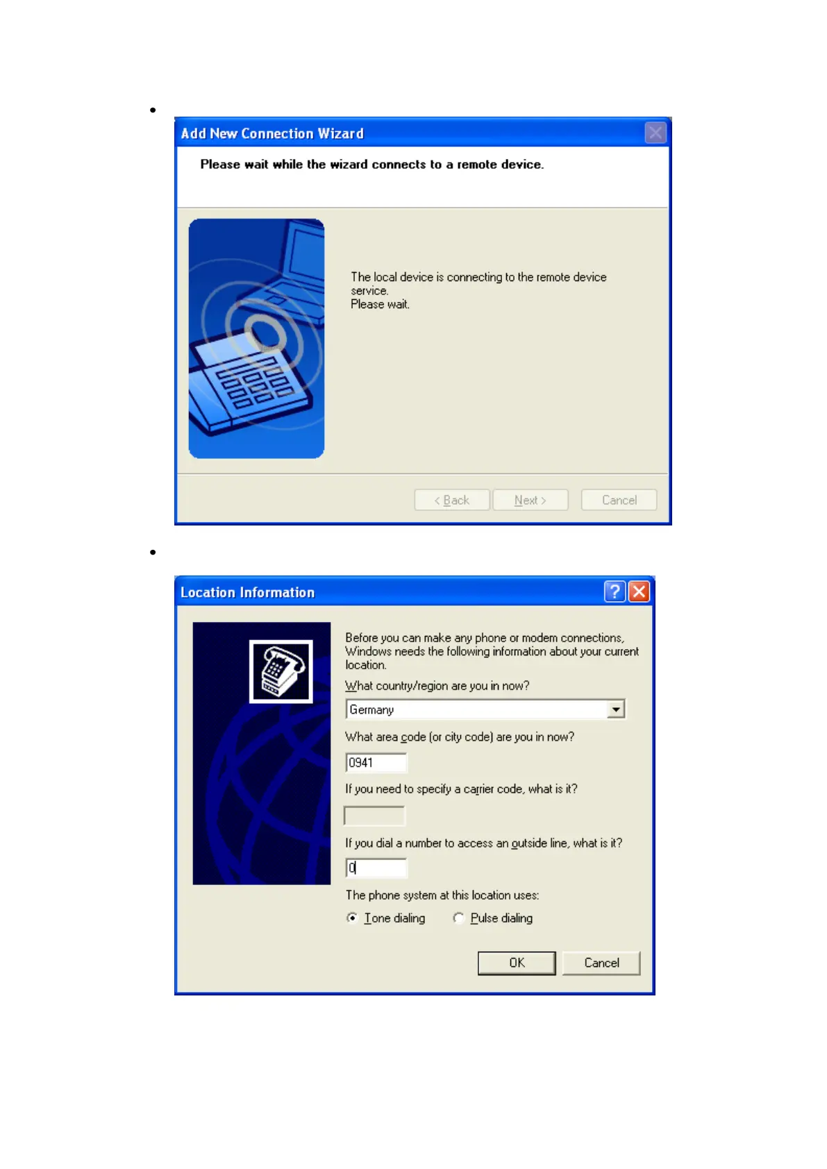 If this is the first tiem the modem has been used, Local Information” has