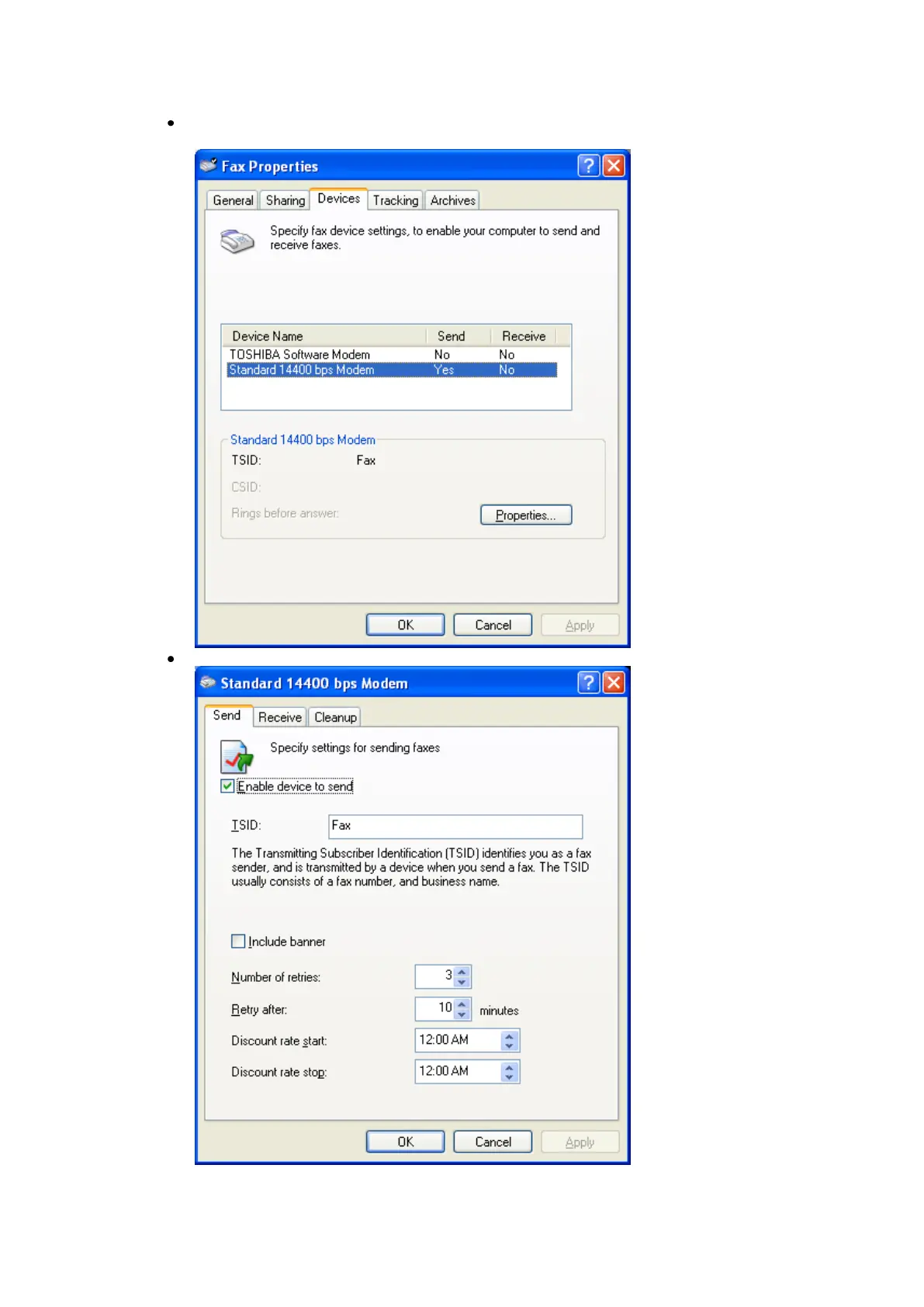 Configure Send” properties