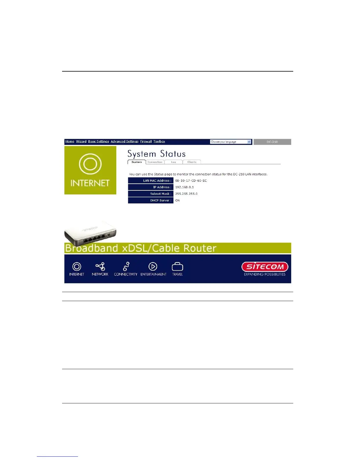 WAN/LAN interfaces, the current firmware and hardware version numbers, any illegal