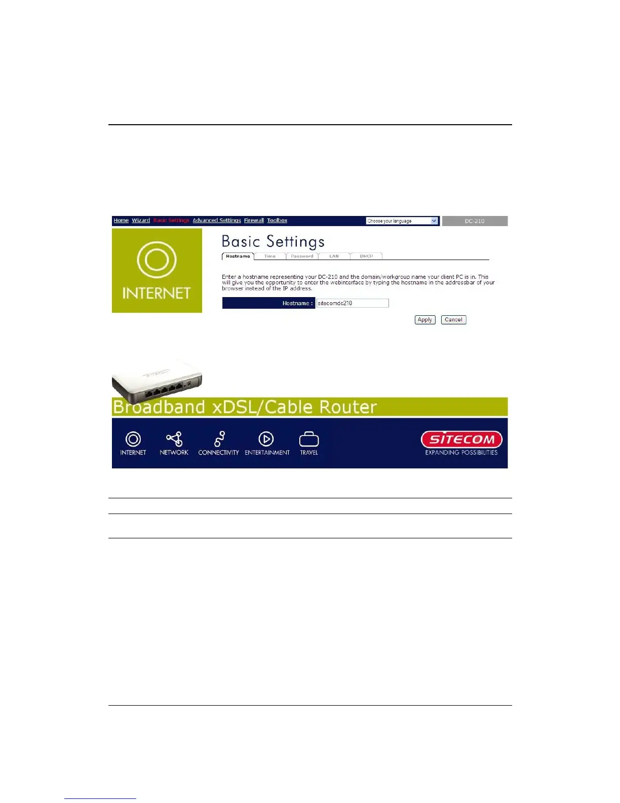 This page allows you to assign Host Name and Domain Name to the router. You can