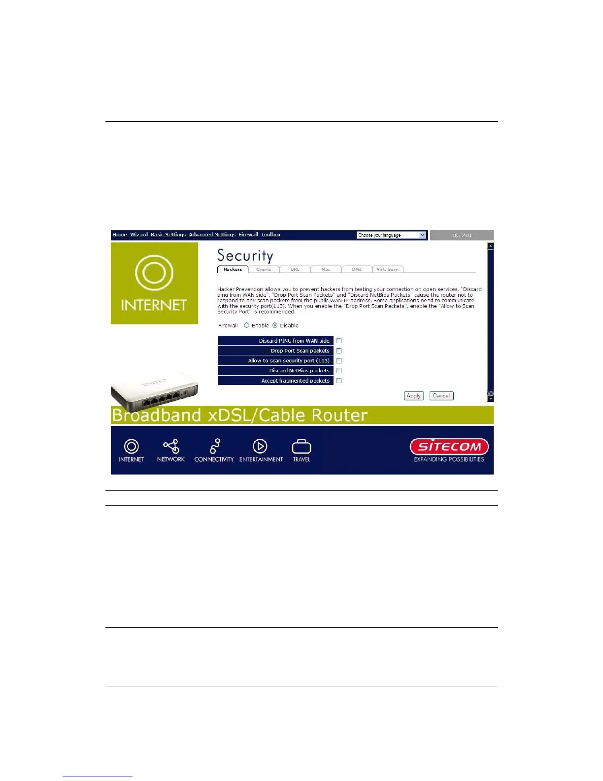 The Broadband router's firewall can block common hacker attacks, including Denial