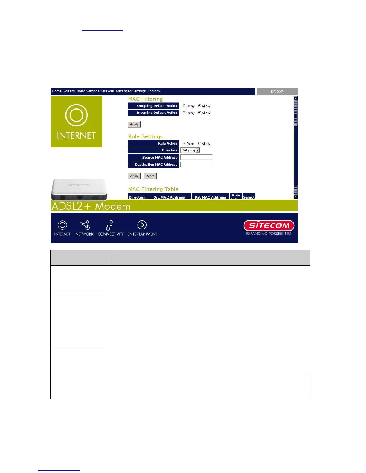 The MAC filtering feature allows you to define rules to allow or deny frames through the