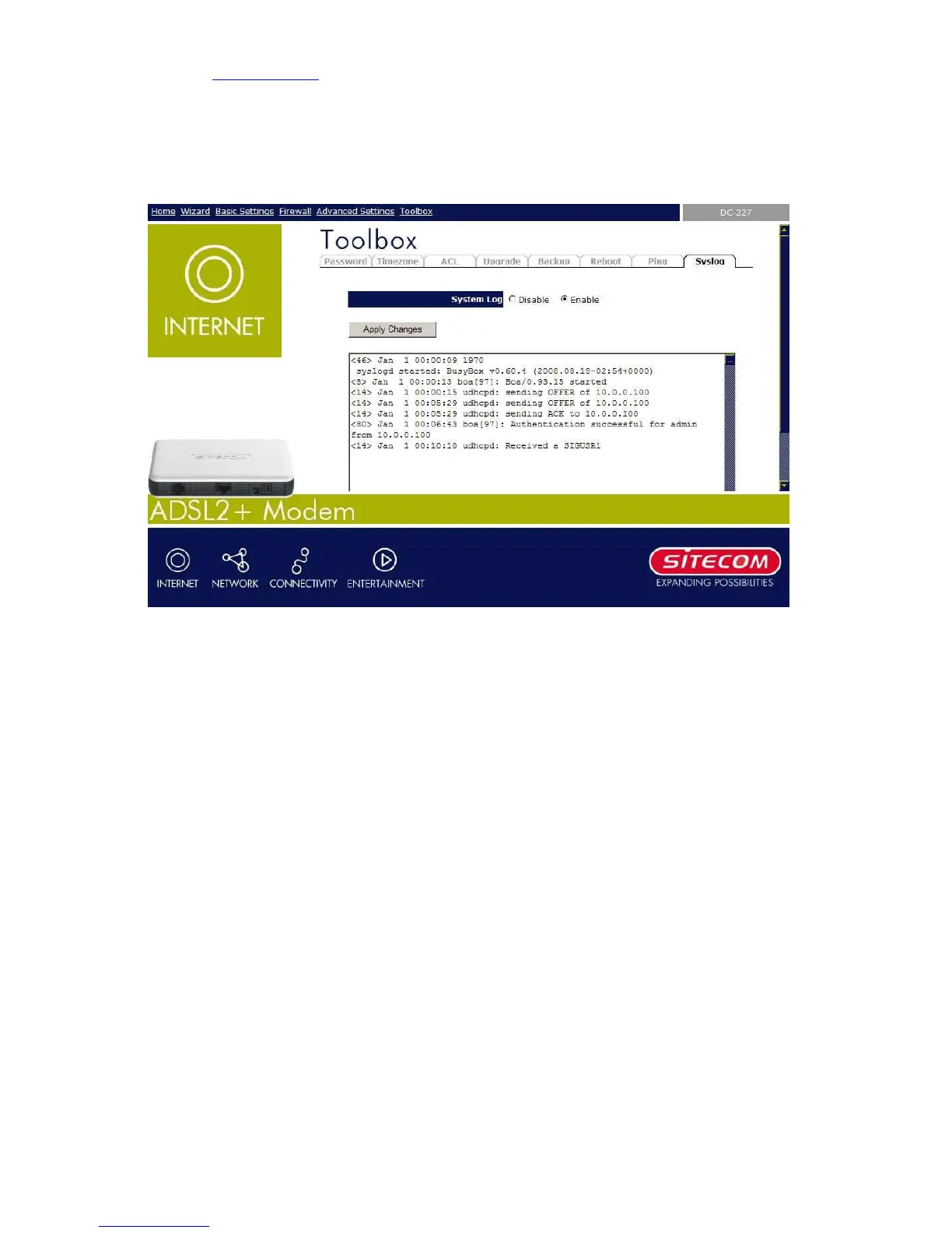 Sitecom DC-227 - Syslog
