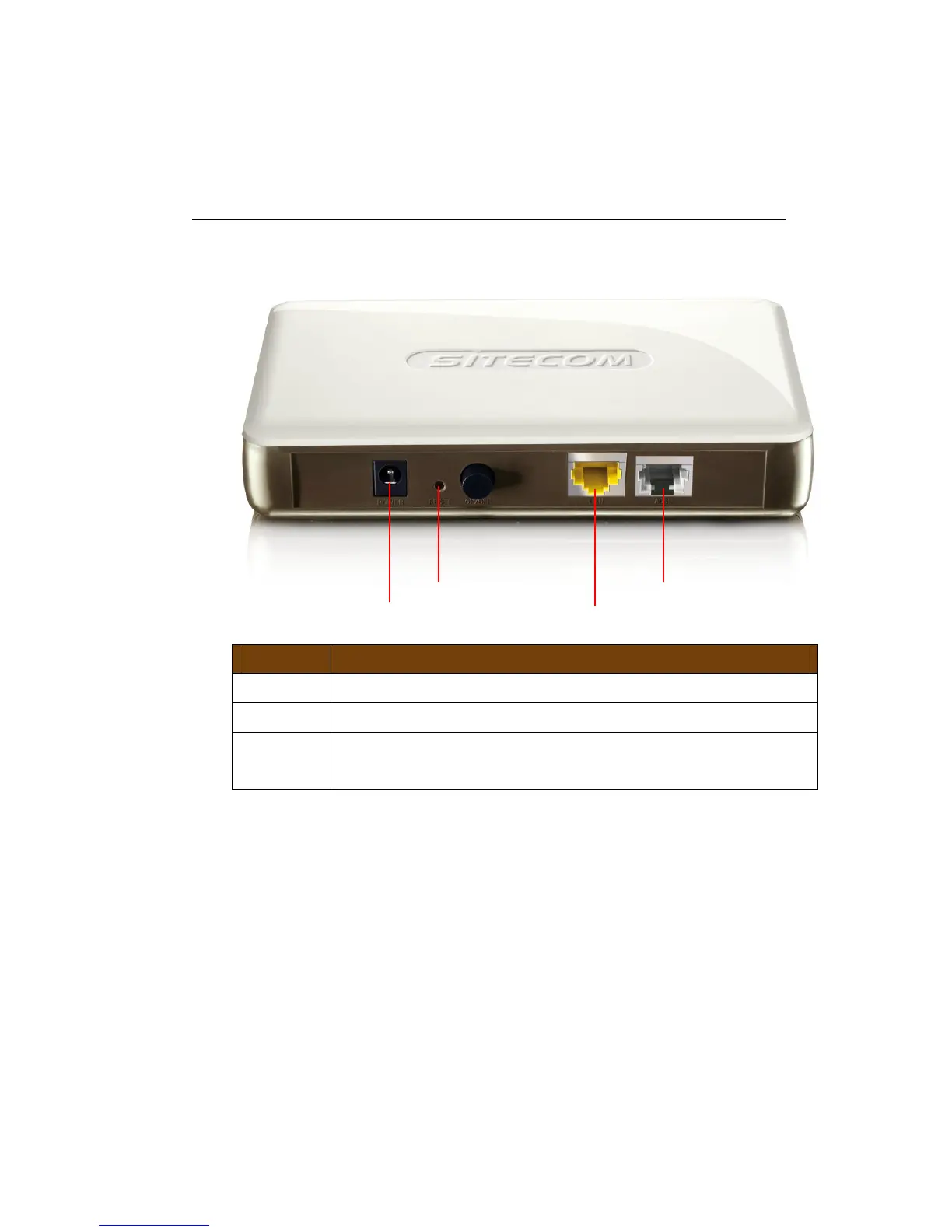 ADSL Connect your telephone/ADSL cable this port