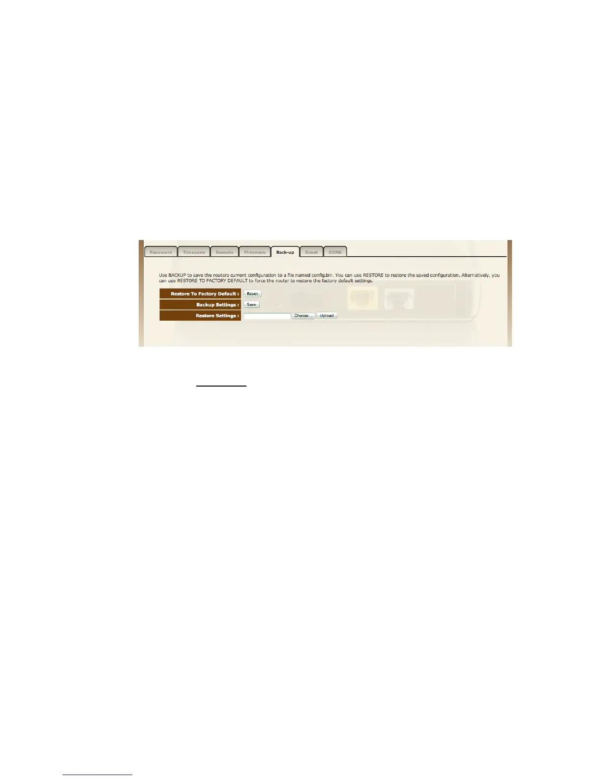 Use the "Backup" tool to save the Broadband router current configuration to a