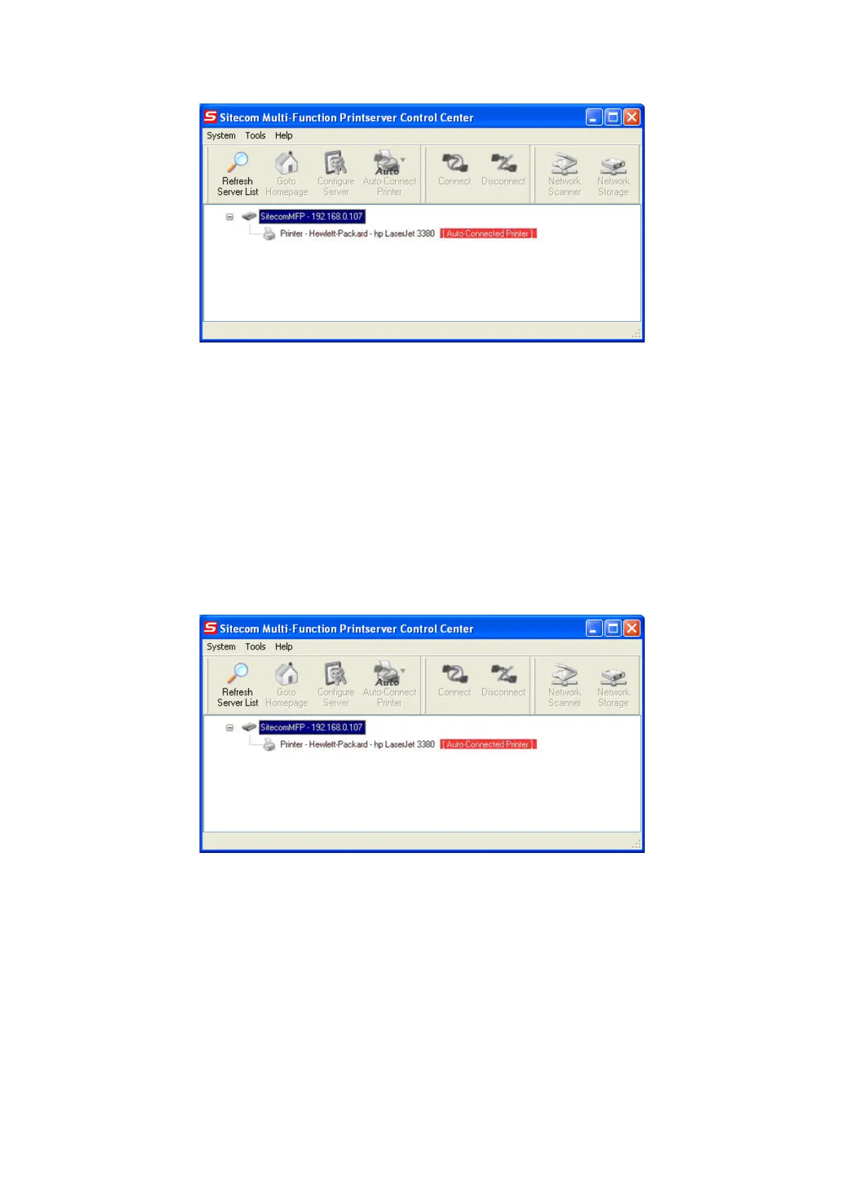 PC are in the same subnet. Control Center will show these MFP servers in blue, meaning you can