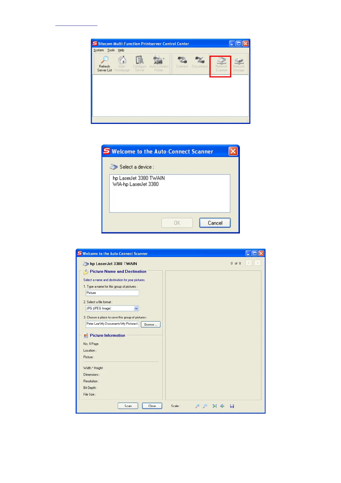• Choose one of TWAIN or WIA item. Click “OK”. The following window will appear.