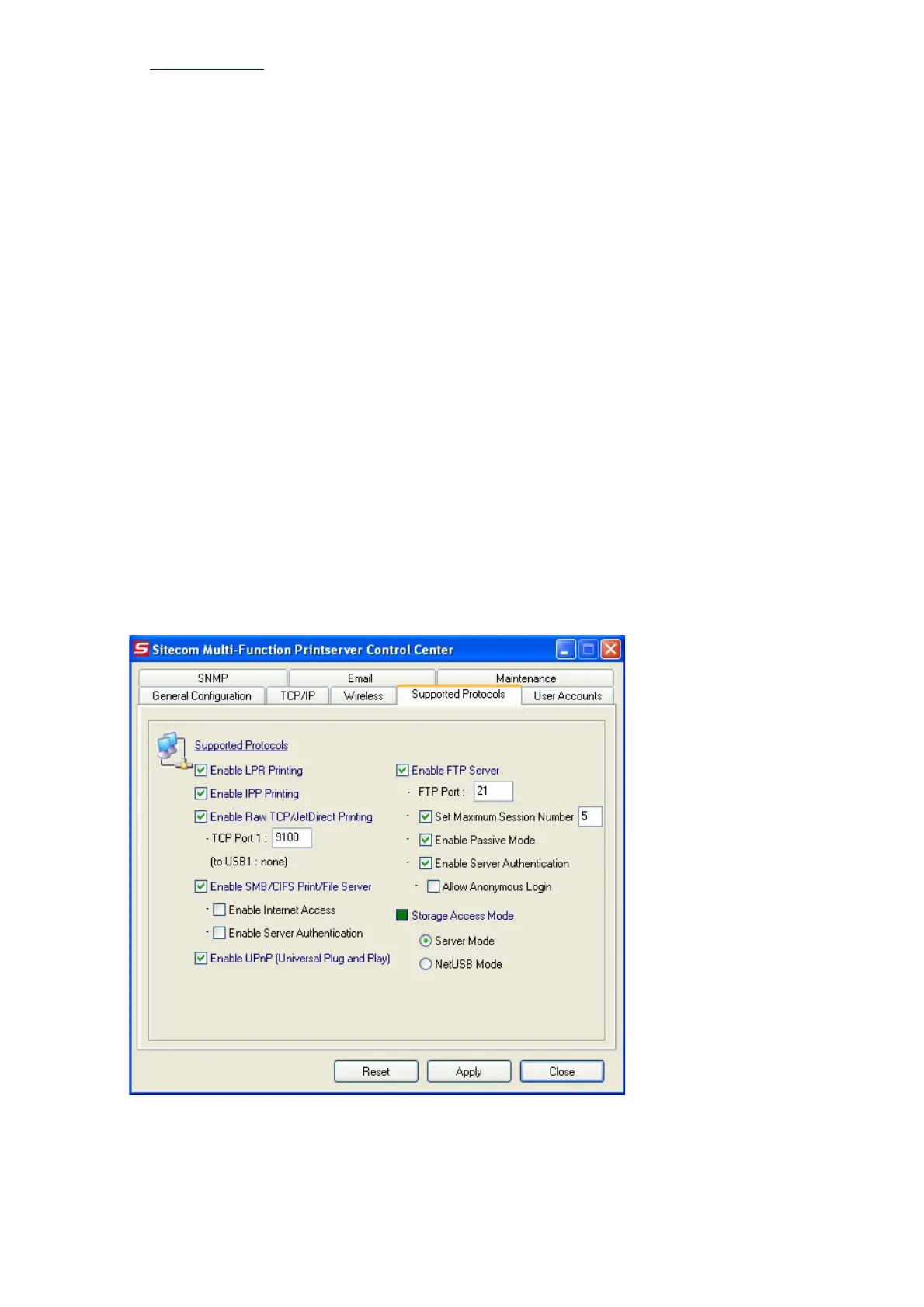• Storage Access Mode : select Server mode (default) or NetUSB mode. And set some