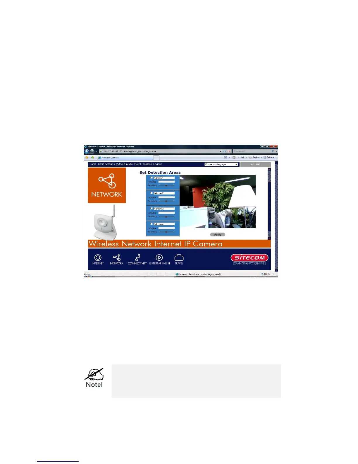 Using the Web-based interface on the Network Camera, select the Motion Detection