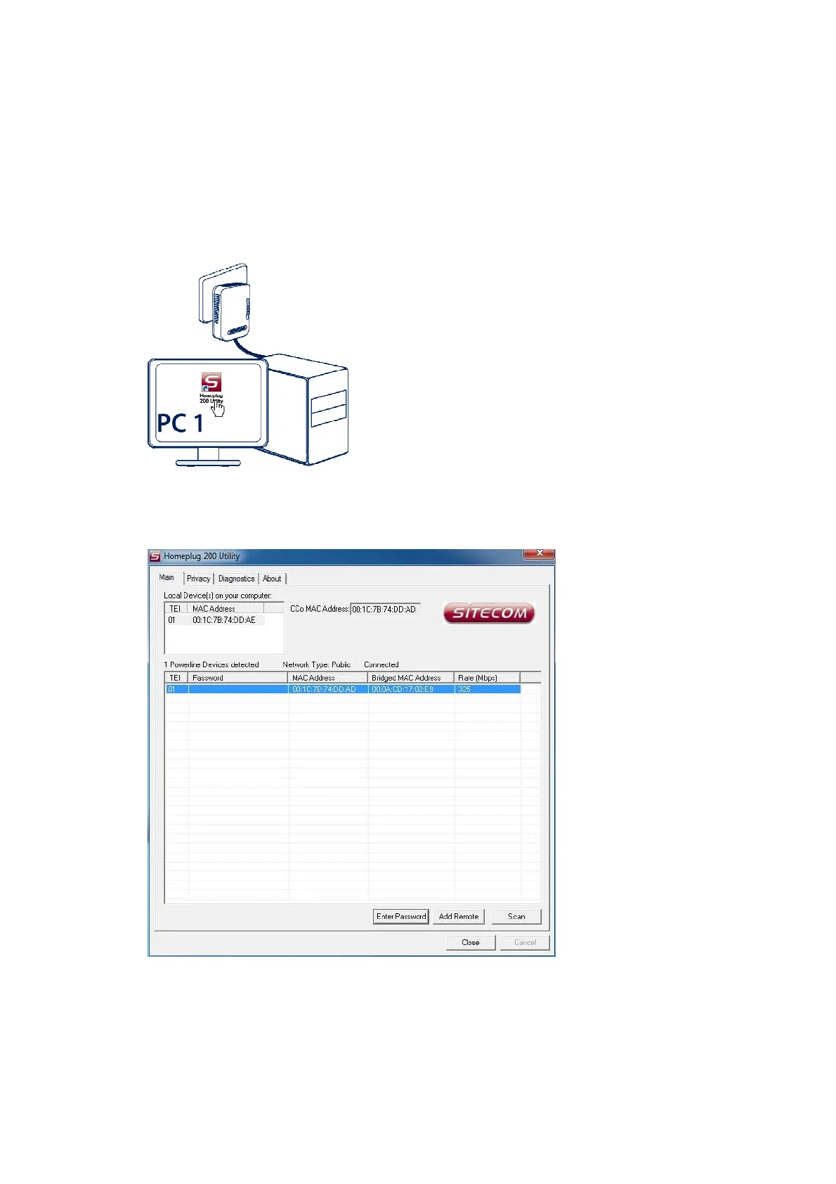 Select the Homeplug in the ‘Powerline devices detected’ list and click ‘Enter