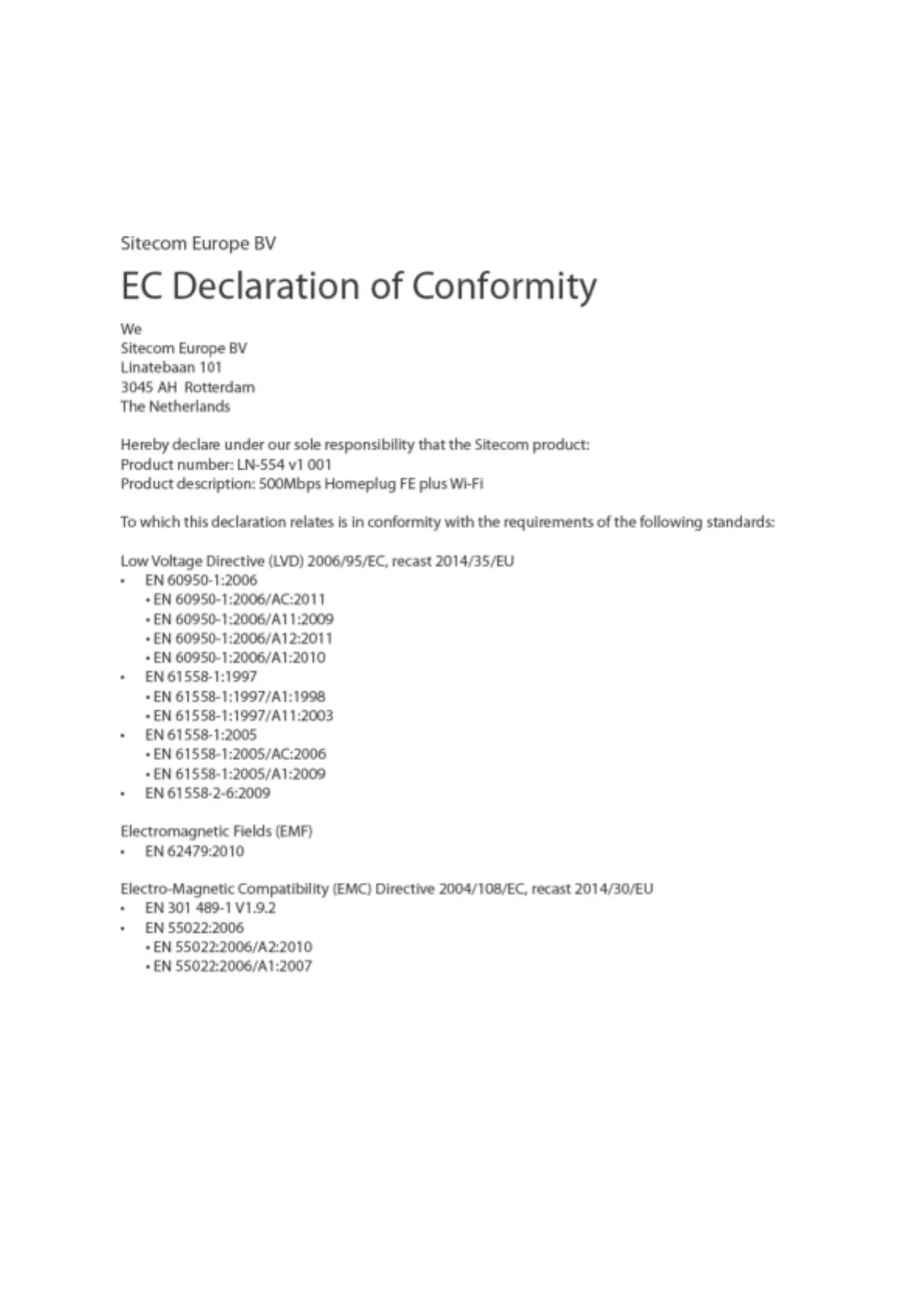 Sitecom LN-554 - Addendum: Declaration of Conformity