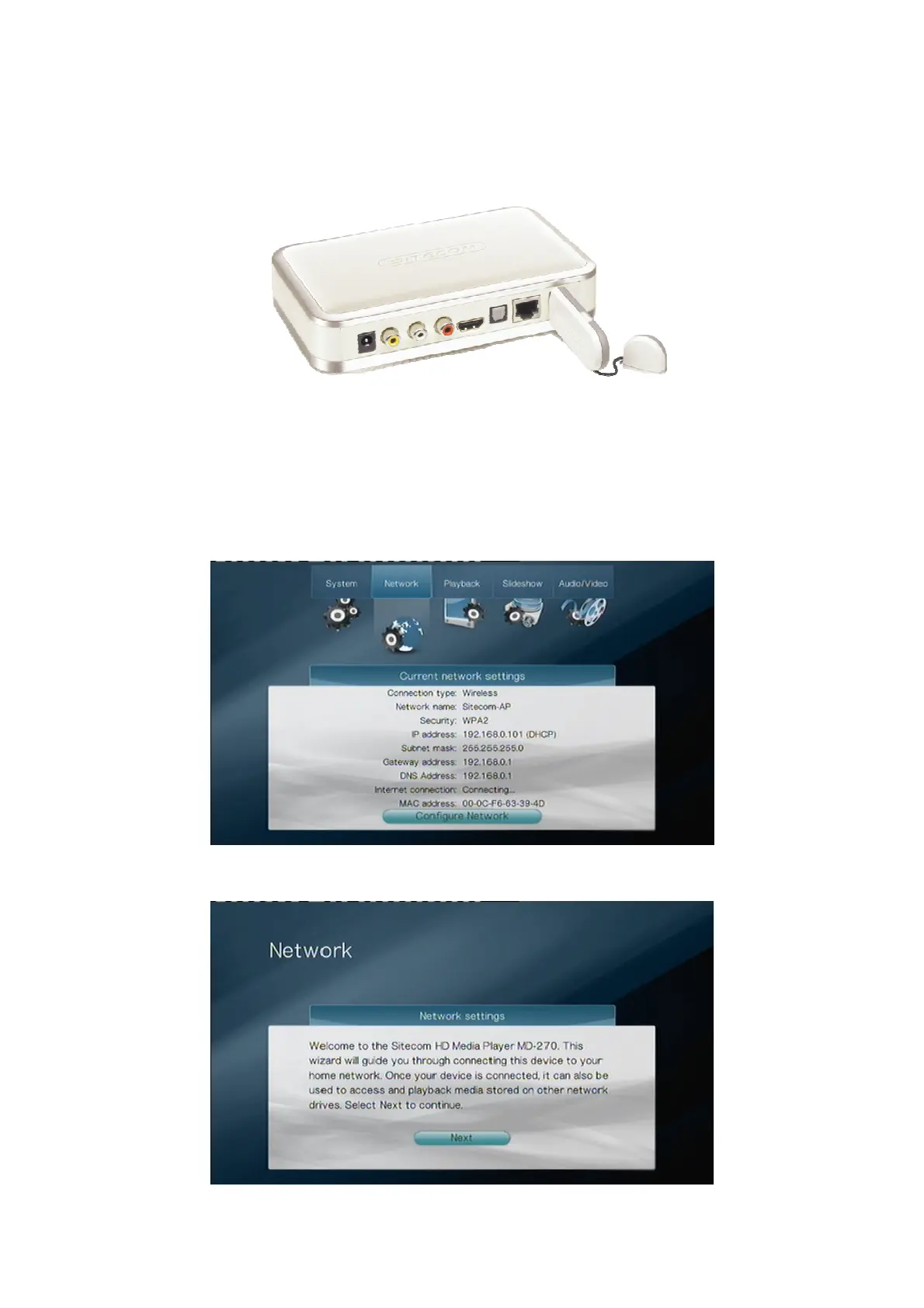 Sitecom Wireless Media Adapter 300N into one of the USB ports on your TV Media Player.