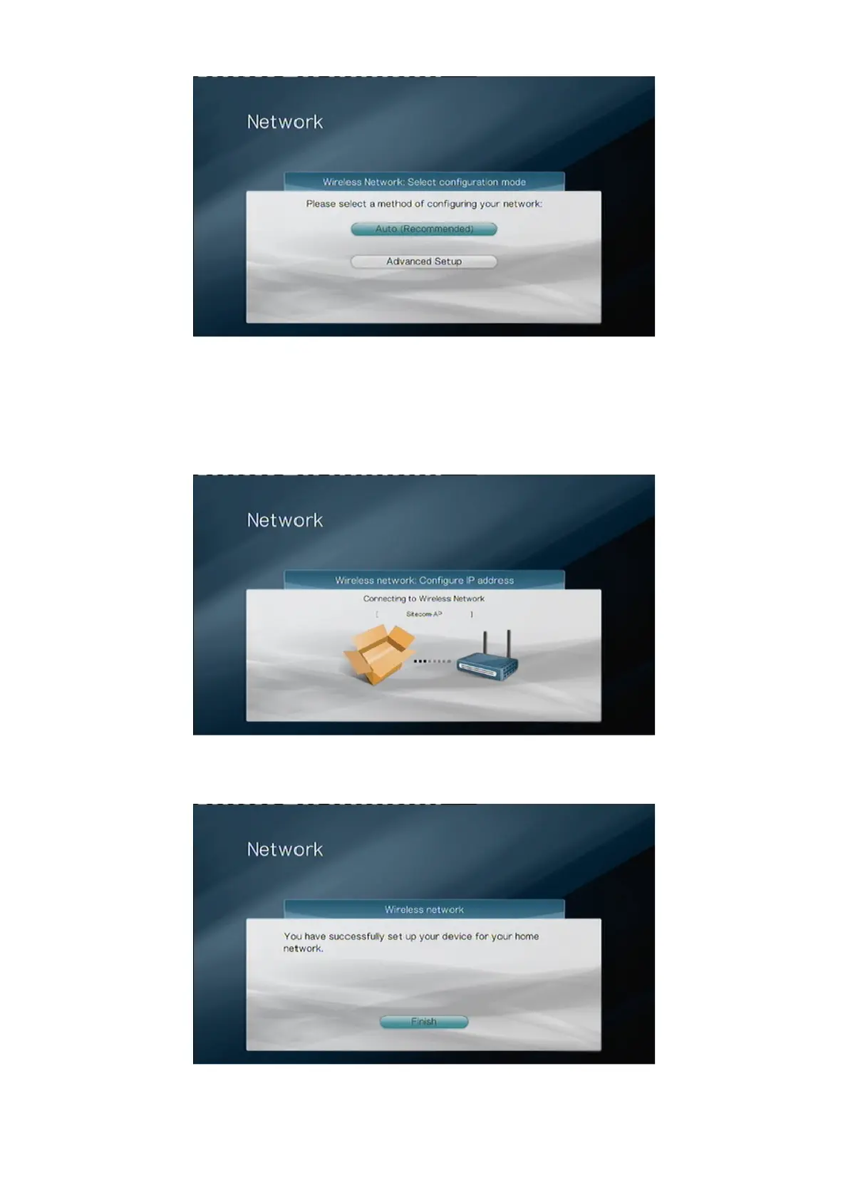 You have successfully set up your device for your home network. Select “Finish” to exit