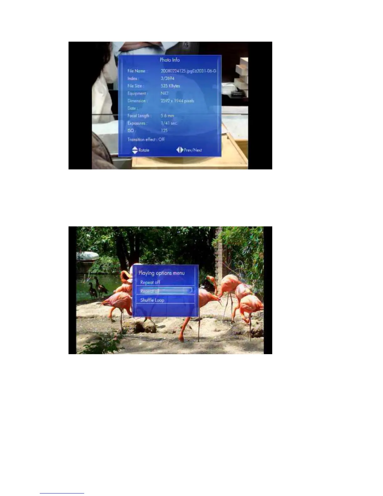 During playback, you can press the ‘Option’ button to change the slide show settings.