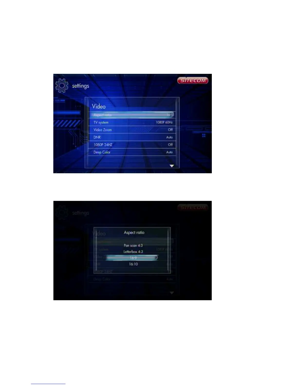 Use this setting to choose screen ratio. You can choose between: