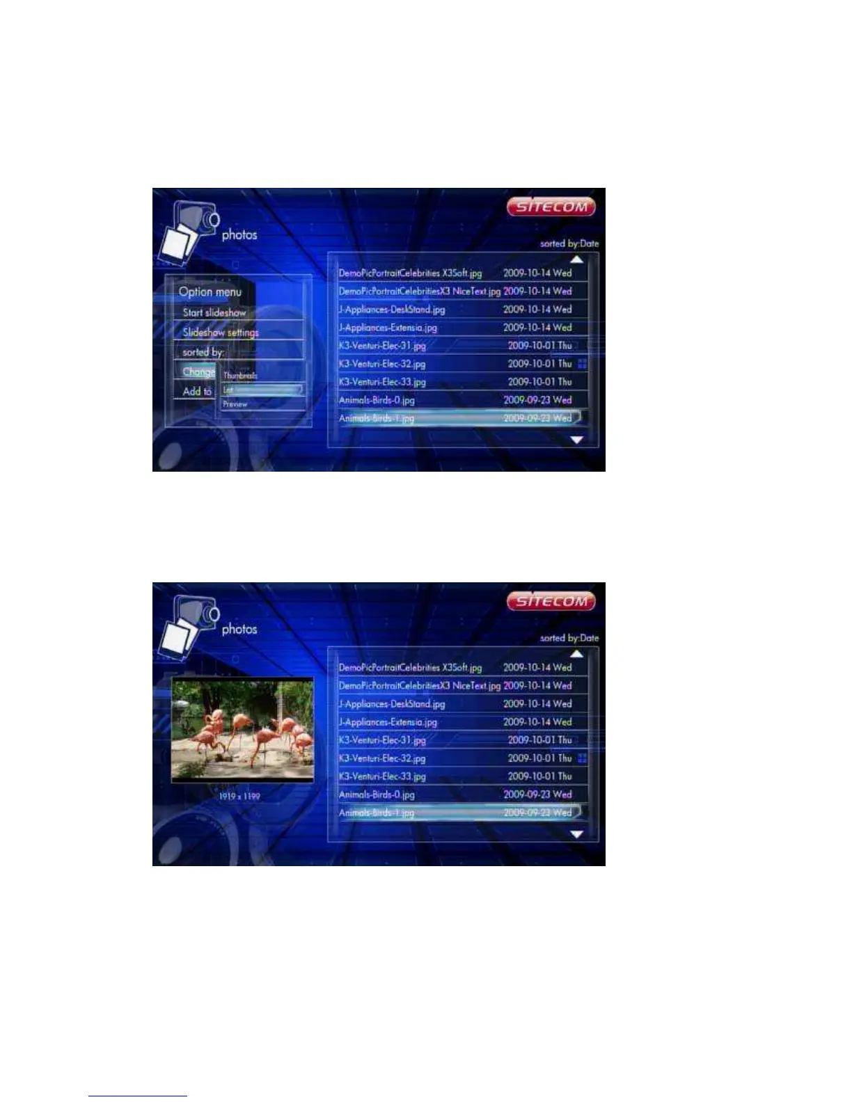 Photos file browser display files by ‘List’.