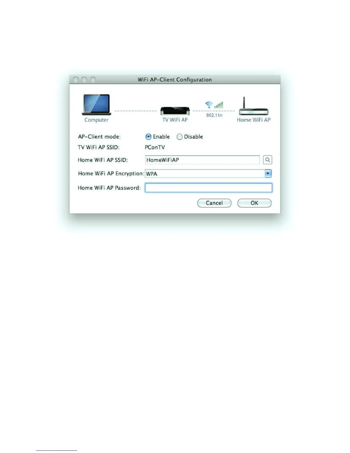 search for your home router SSID. Click OK to save the settings.The PConTV will reboot