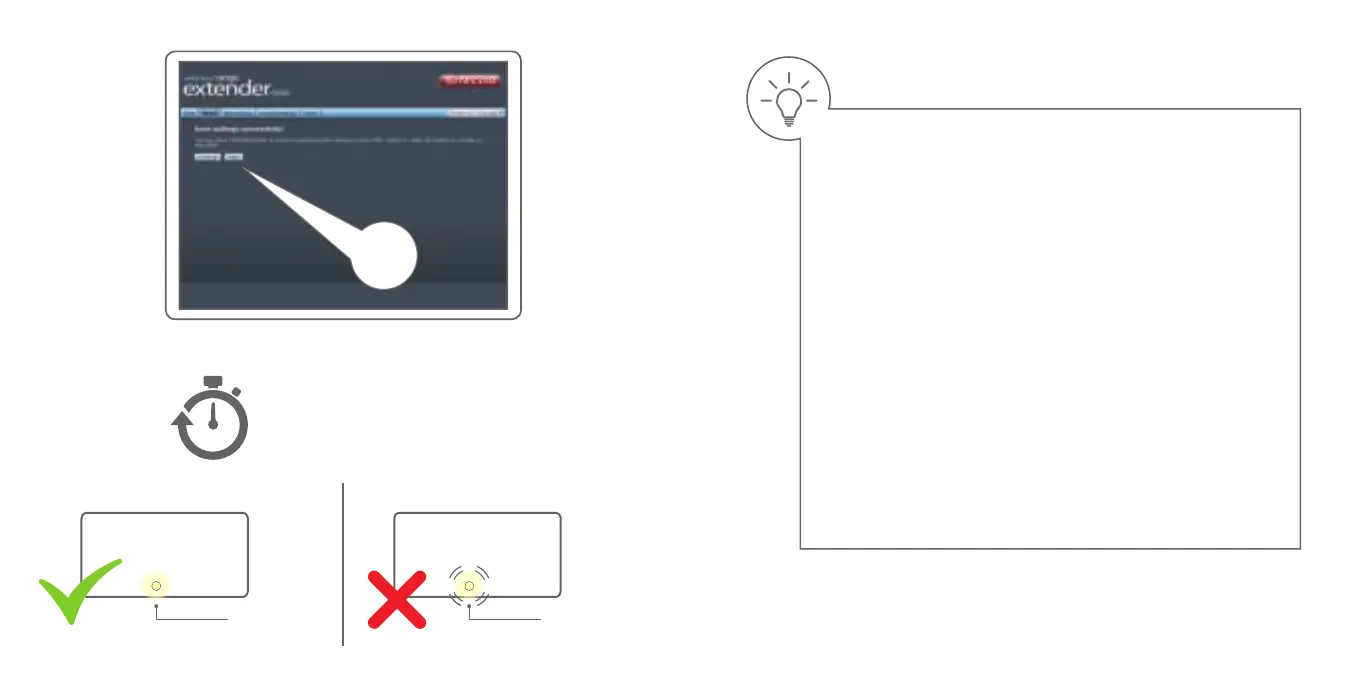 Brandt wit: optimaal. Knippert wit: plaats Range Extender